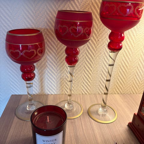 Samling av lysestaker og telysholdere i metall, tre og stein.