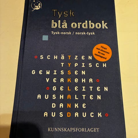 Selger en brukt utgave av Kunnskapsforlagets blå tysk‑norsk/norsk-tysk ordbok. Boken er hel og uten skader, og er et solid og pålitelig oppslagsverk for studenter, språkinteresserte eller alle som trenger et fysisk referanseverk i tysk språk. Perfekt for skole, studier eller hjemmebruk.