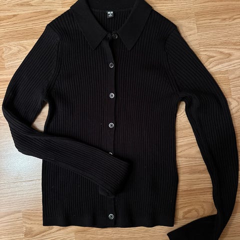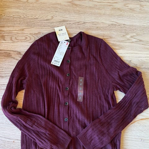 God og varm cardigan i 100% ull. Den har to lommer foran og er i god stand. Kjøpt på Uniqlo i London for noen år siden (hvorfor det ennå ikke er en Uniqlo i Norge er beyond me for jeg elsker dem!), men nå må jeg dessverre selge den da den har blitt for liten og nå bare henger i skapet og håner meg. Så håper noen andre kan få glede av den!