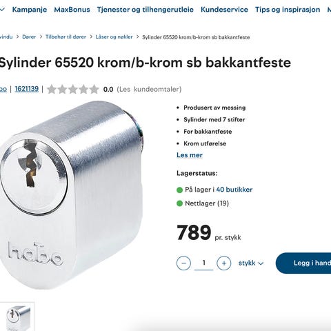 Habo Sylinder rund dobbel lås i messing