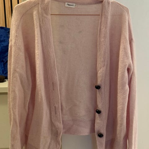 Lysegrå cardigan fra Filippa K. Den er i ull og har skinnpadder på albuene. Den har dessverre blitt for liten og har kun hengt i skapet det siste året, derfor selger jeg den nå videre så den kan få en ny eier som kan bruke den like flittig som jeg en gang gjorde. Det står ikke noe størrelse inni da lappen er klippet bort, men vil tro den passer både Small og XS. Jeg kan ta mål om ønskelig:)