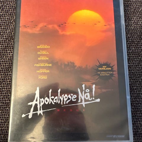 Apokalypse Nå! DVD med cover som viser en solnedgang over et landskap. Produktet inneholder filmen Apokalypse Nå! i DVD-format.