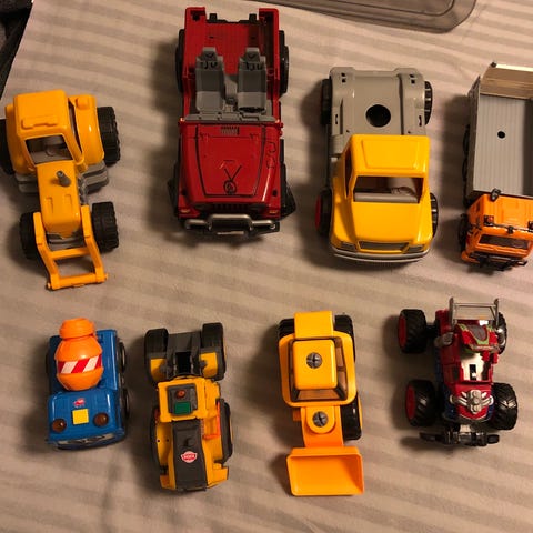 Gravemaskin, brannbil fra Dantoy, motorsykkel, bil Wader