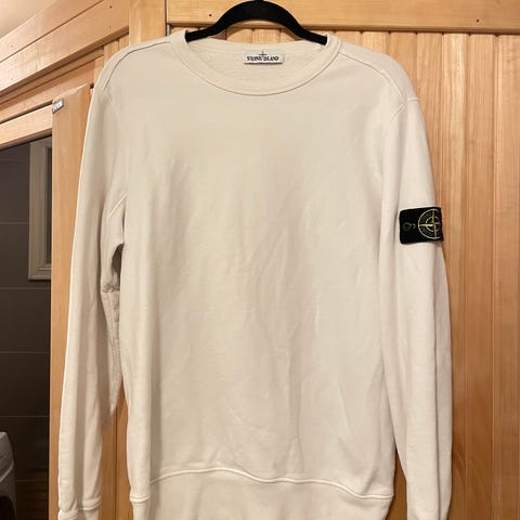 Den off white stone island hettegenseren ble kjøpt på nk huset i Stockholm sommeren 2024 og ble kun brukt på høsten så den er brukt 5-6 ganger.☺️
