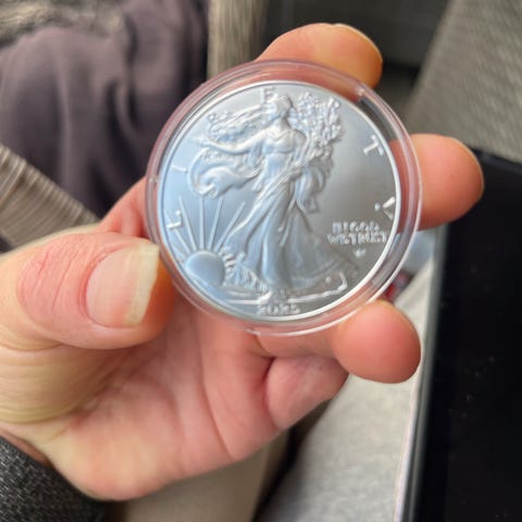 1 oz norske sølvmynter selges samlet, kjøper betaler frakt.