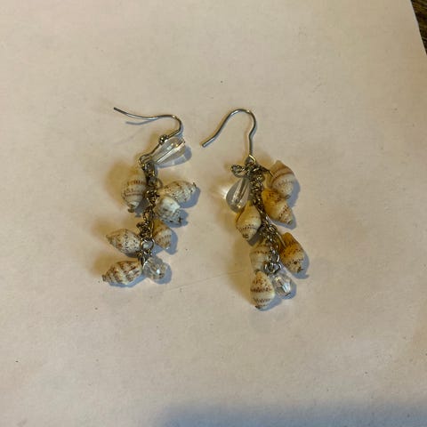 Ørepynt med anheng i havgrønt skjell. Nydelig og unikt
