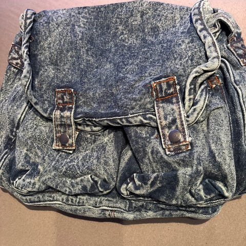 To nye kule dongerivesker. Justerbar skulderreim. Den ene har 1 stort rom og 1 rom foran, lukkes med en knapp. Den andre har 1 stort rom og 2 mindre foran, lukkes med to knapper. Veldig forseggjorte vesker.