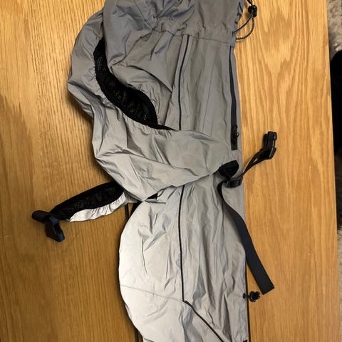 Den er pent brukt. Fargen er Marineblå og koster 1190,- som ny. Selges da den er for liten, kjøpt før hunden var ferdigvokst.