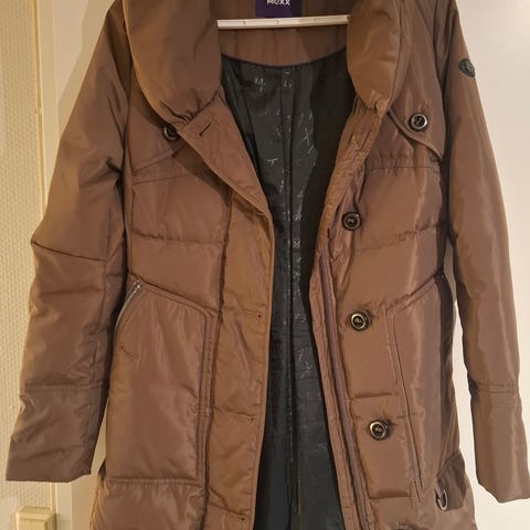 Mørk grønn Vinterjakke med hette med pels på . Veldig god og varm vinterjakke . Gode lommer og snøring i livet .