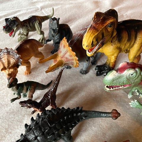 Stor pakke med 15 dinosaurer, noen store og noen små. Noen med lyd.