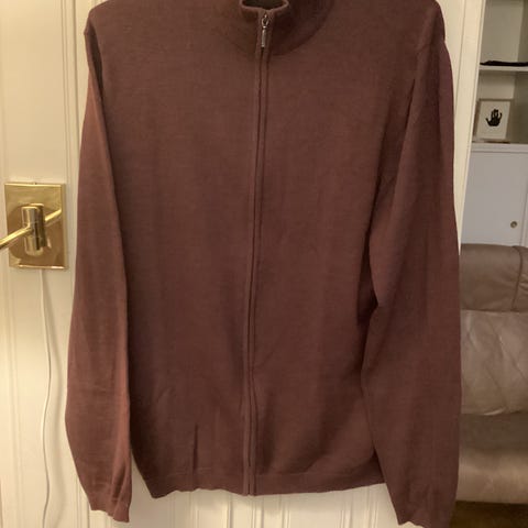 Myk tynn merinoull full zip genser som er nesten ikke brukt. Fikk et lite hull som ble sydd igjen. God kvalitet genser med 100%, merinoull som er varm og myk mot kroppen.