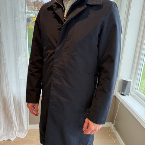 Blir ikke brukt lenger. Pent brukt lett foret regnjakke i str medium.