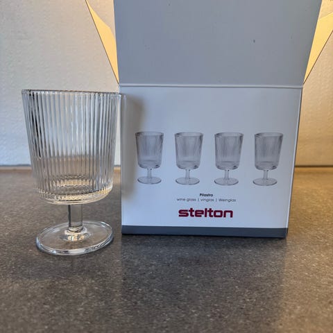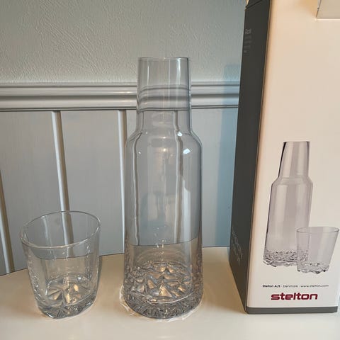 Stelton drikkeglass sett. Inneholder 6 stk glass. I tillegg er det 1 stk karaffel i samme stil.