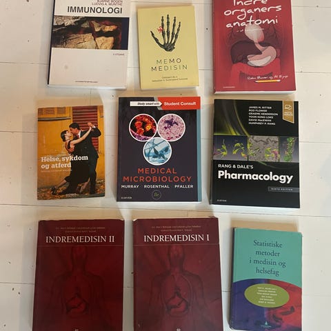 Bøker fra hele medisinstudiet selges. Pris diskuteres. Må hentes