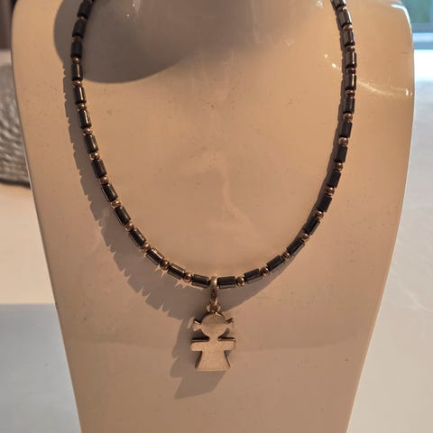 Smykke laget i sølv med dekorative perler. Smykket har et detaljert design med en sentral perle og markasitter