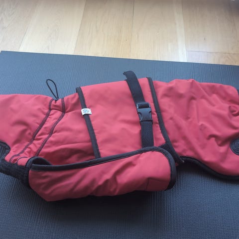 Canelana hundedekken i rød farge, størrelse 2XS. Dekkenet har justerbar stropp under magen og borrelåslukking. Yttermaterialet er softshell, mens innsiden har mykt ullfôr for økt komfort og varme. Egnet for små hunder i kjølig vær eller ved behov for ekstra beskyttelse ute.