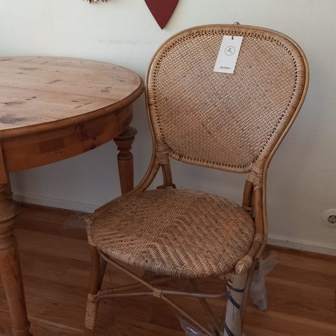 Hel og fin kurvstol uten pute. Lite brukt, stort sett stått på et gjesterom og brukt som ekstrastol ved besøk. Setehøyde ca 46 cm, setedybde ca 50 cm, høyde rygg ca 50 cm, total høyde ca 88 cm, bredde ca 64 cm. Kan evt leveres i Oslo/Bærum etter nærmere avtale.
