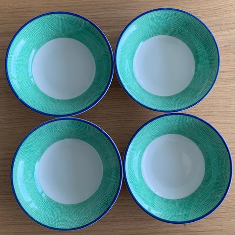 Disse skålene er fra ca. 1930 og er typiske for Art Deco-perioden. Skålene er fra det tyske kvalitetsmerket Thomas Bavaria. Thomas ble en del av Rosenthal i 1908 og merket "Thomas Bavaria" ble brukt mellom 1908 og 1939.