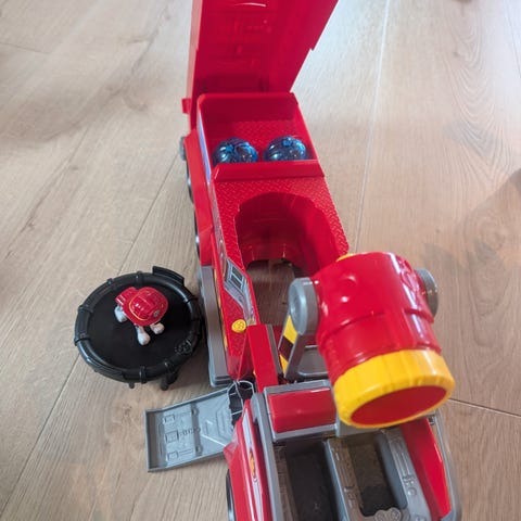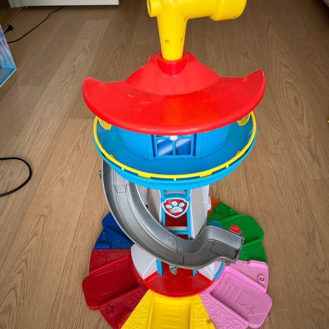 Paw Patrol leketårn med spiral rampe og to medfølgende biler.