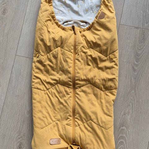 Pent brukt Voksi City vognpose. Varm og god sovepose laget av 90% dun og 10 % fjær. Med forlenger.