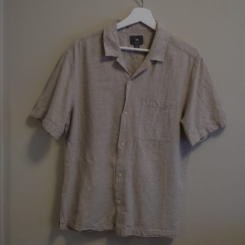 Pent brukt kortermet skjorte fra H&M i marineblå, størrelse M, regular fit. Laget i en behagelig blanding av 52 % bomull og 48 % lin. Enkel og stilren skjorte som passer godt til både hverdag og sommerlige anledninger.