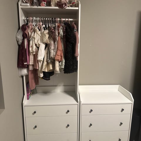 Pent brukt garderobe. Ingen synlige merker. Det er ikke skrudd på håndtak, så ingen hull i fronter.
