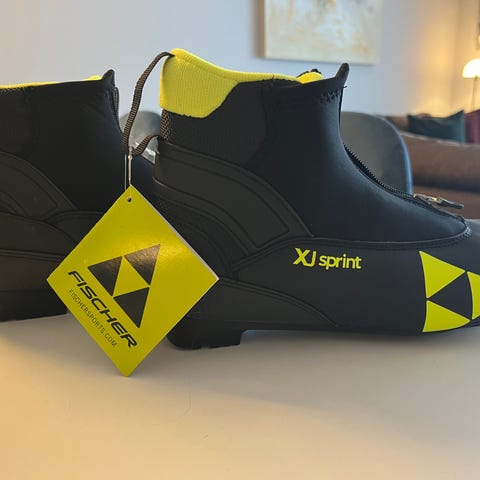 Pent brukte Fischer kombisko selges. Det er noe slitasje på sømmer og plastdelen ytterst på glidelåsen er knekt. Skoene er ellers i god stand.