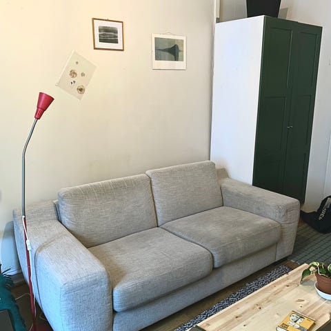 Sofaen er behagelig og uten merker. Fin sofa.