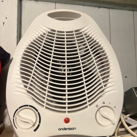 Starlyf Fast Heater varmeovn i hvit farge. Produktet har en effekt på 220-240V og 50Hz, med en strømbryter på siden. Designet for enkel bruk med innstillinger for hastighet og timer. Kompakt størrelse, ca. 17 cm i høyden, med støpsel for europeisk stikkontakt. Lite brukt. Lager litt lyd. Blir varm foran på deksel. Må hentes.