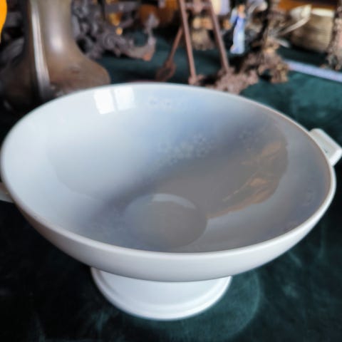 Veldig fint lite fat på stett, kamskjell formede kanter. Usikker på produsent, men vintage europeisk?