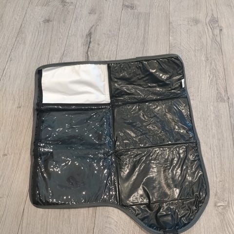 Praktisk stellematte som kan legges sammen slik at den tar minimalt med plass i stellevesken.
