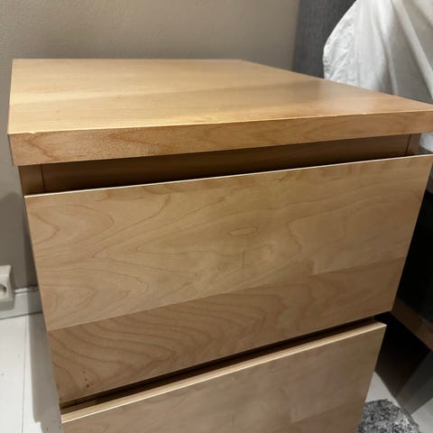 Selger to pent brukte nattbord fra IKEA malm serien. Det ene har et par små vannskader i skuffen og på toppen men ikke noe som er veldig synlig.