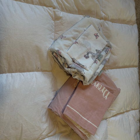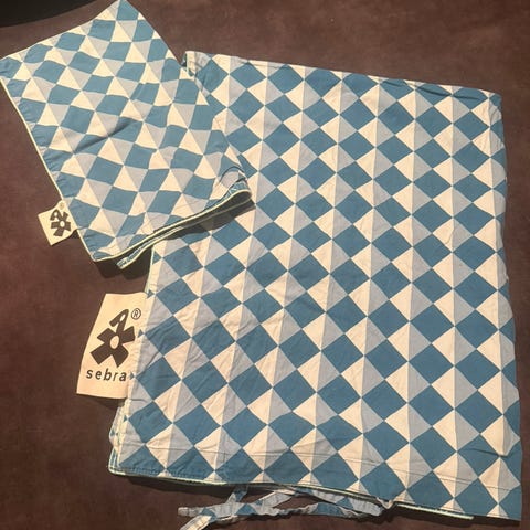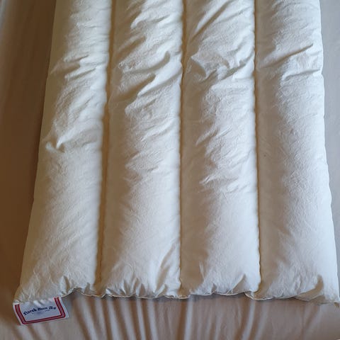 Pent brukt dundyne og dunpute til junior fra Hoie med 2 tilhørende sengesett.