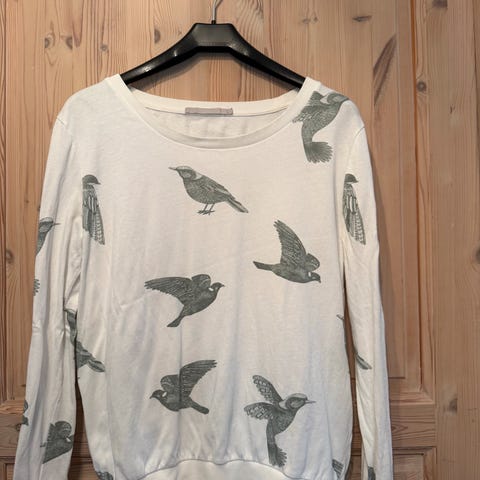 YAY genser i en myk, strikket kvalitet. Den har rund hals med ribbestrikket kant, samt ribbestrikk nederst på bolen og på ermene. Fargen er brun/beige med et ujevnt, skyet mønster som minner om batikk eller en vasket effekt i lysere nyanser. Genseren har en enkel, avslappet passform og et litt røft, naturlig uttrykk, med synlige sømmer langs skuldre og sider. Den ser både komfortabel og hverdagslig ut, med et dempet og jordnært fargepreg.