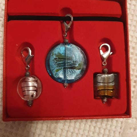 To stk nydelige håndlagde porselensnåler og en ring selges for kr 300,-. Nålene kan brukes både som kjedeanheng og som nåler. Nålene er 4,8 x 3,7 cm, ringen er 3,9 x 1,8 cm