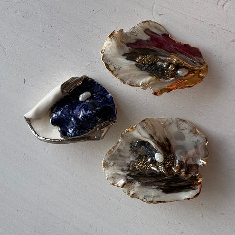 Porselensnåler og ring