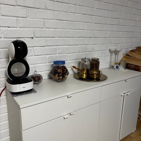 Eket hyller fra IKEA m oppheng/skinne