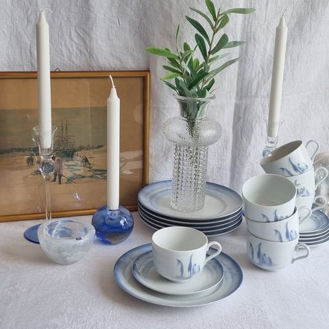 En kopp med skål Kr. 150,- Kruset og den dype skålen er solgt. Alle delene er i fin stand, ser nye ut.
