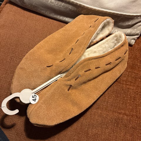 Kjøpt i St. Tropes. Merke Les Tropeziennes. Par M. Belarbi. I skinn. Med gummisåle. Kun brukt en gang.