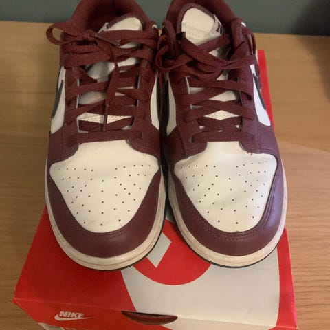 Selger et pent brukt par sneakers fra Nike i semsket skinn og merkets anerkjente myke såle. Dette er nyeste utgave av ikoniske Cortez med bredere passform og mer stabil såle enn sine forgjengere. Fargen heter Dark Russet og er en mørk rustaktig oransje. Ingen skader eller slitasje av betydning, kun mindre overfladiske bruksmerker og patina. Nypris 1300,-