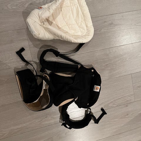 Ergobaby Omni 360 bæresele i grå farge. Designet for komfort og støtte med justerbare stropper og polstrede deler. Passer for bruk med barn i flere posisjoner.
