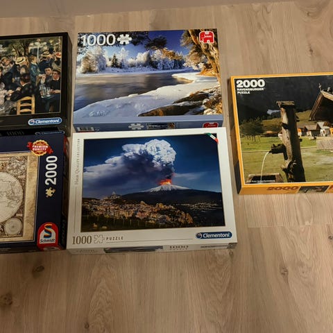 2 puslespill selges samlet. Kr 100. Disney får du gratis, for det mangler en brikke.