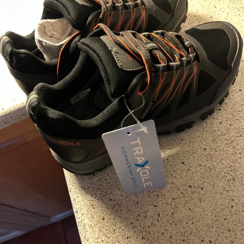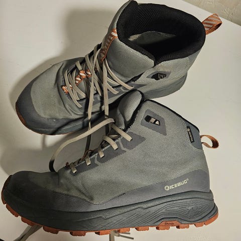 Skoene er brukt, skinnet har tydelig slitasje og trenger behandling/impregnering, men alt er intakt og skoene er fullt funksjonelle. Passer bra som hverdags- eller reservevintersko.