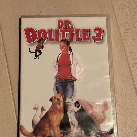 Dr. Dolittle DVD med filmen Dr. Dolittle. Inneholder filmen Dr. Dolittle med dyrekarakterer og eventyr.