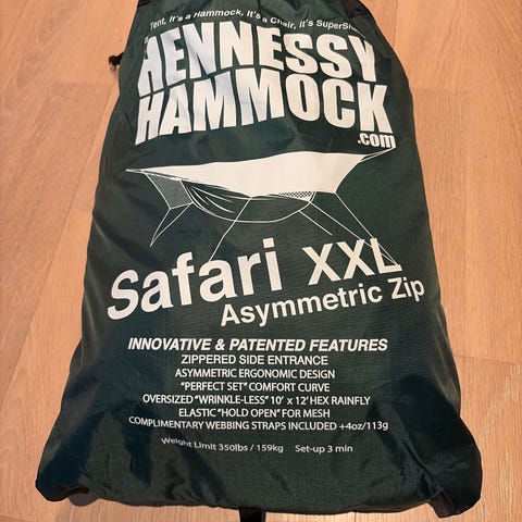 Til salgs er en Hennessy Hammock Deluxe Explorer Asym komplett med Hennessy SuperShelter isolasjonssystem.
