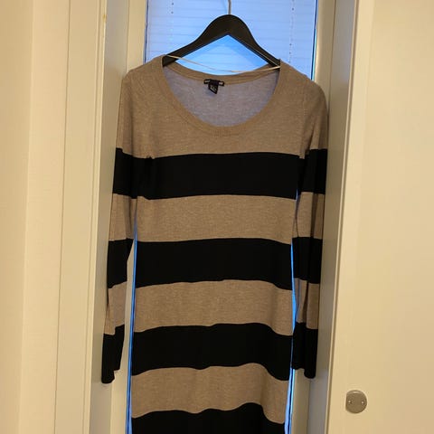H&M hverdagskjole i størrelse M for kvinner. Kjolen er laget av viskose og har svart farge med stripemønster. Passer til hverdagsbruk.