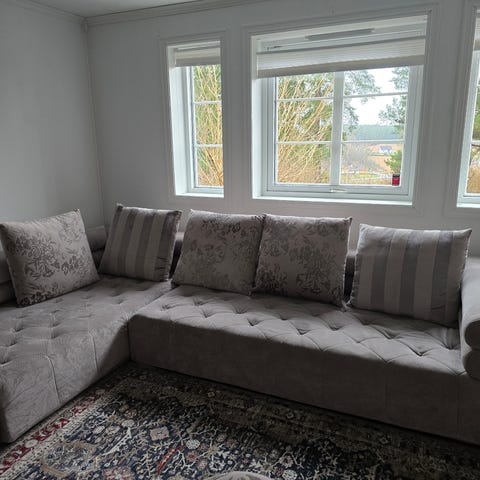 Grå hjørnesofa i stoff