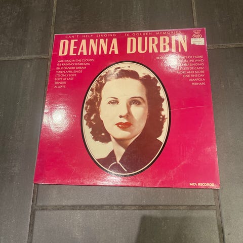 Deanna Durbin vinylplate med klassiske musikkspor. Produktet er en musikkplate i vinylformat. Selges for 100 kr . Kan sendes med post nord for 130 kr eller 140 kr med posten eller fiks ferdig . Eller kan hentes etter avtale .