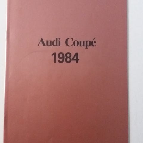 FLOTT ubrukt Audi Coupe bilbrosjyre selges kr 300,- inklusiv porto.