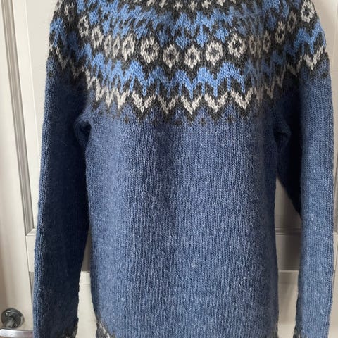 Selger nystrikket Astrix genser i orginalgarnet Gann garn Lun, farge oliven, str M. Mål: Lengde 60 cm, overvidde 104 cm og arm 49 cm. Fargen er litt vanskelig å få frem men mest riktig på bilde nr 1.
